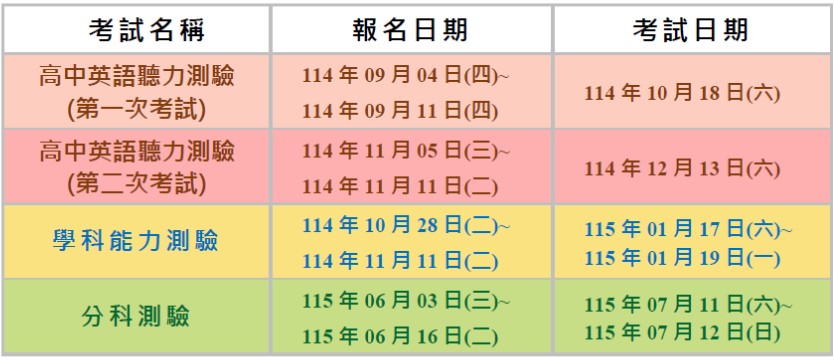 【情報】115學年英聽學測分科測驗考試簡章 8月5日發售 學測1月17日至19日考試